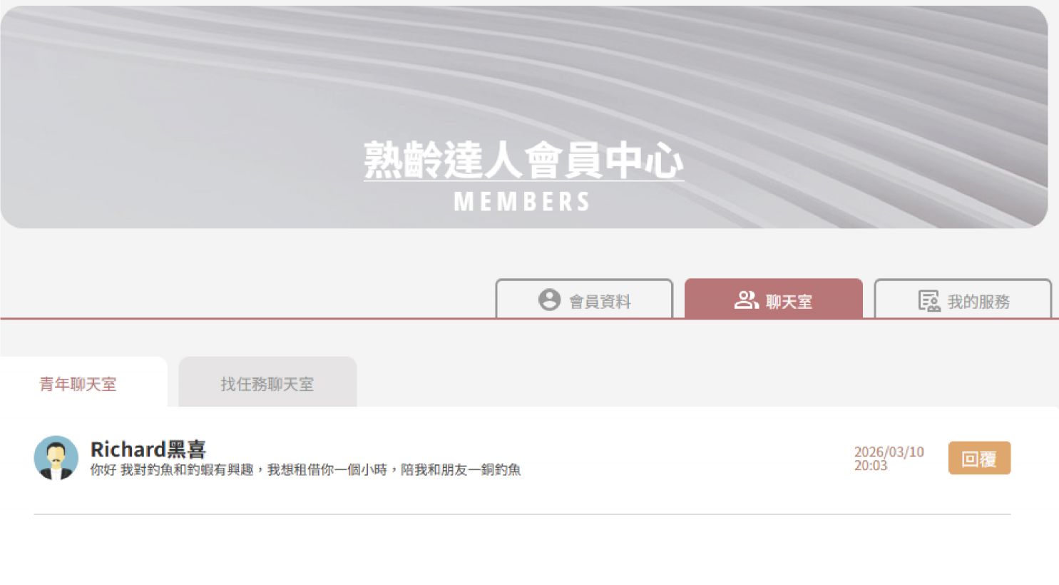 青年聊天室(青年與社會大眾邀請熟齡達人的聊天室)