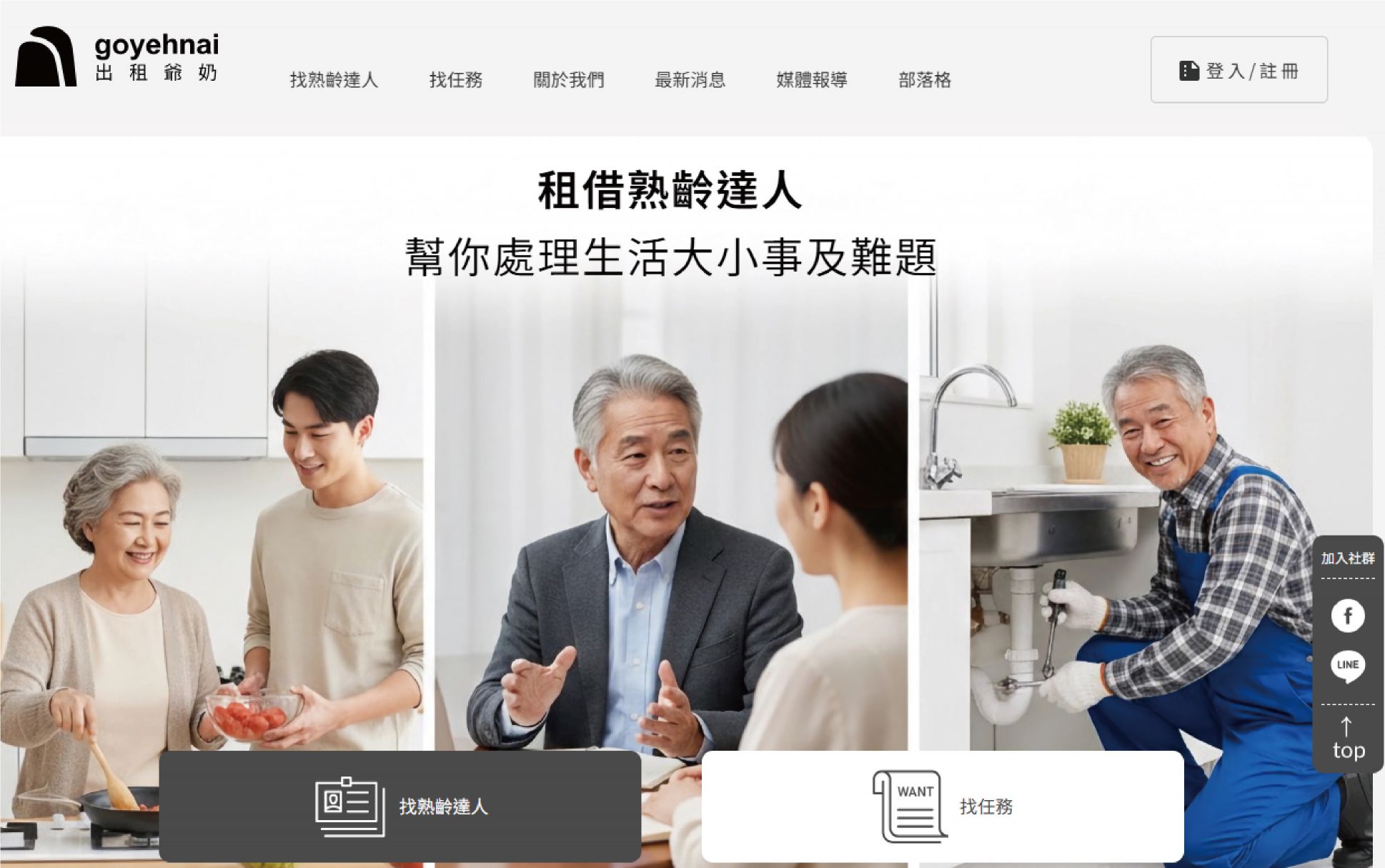 出租爺奶是一個高齡與熟齡工作者的接案平台。